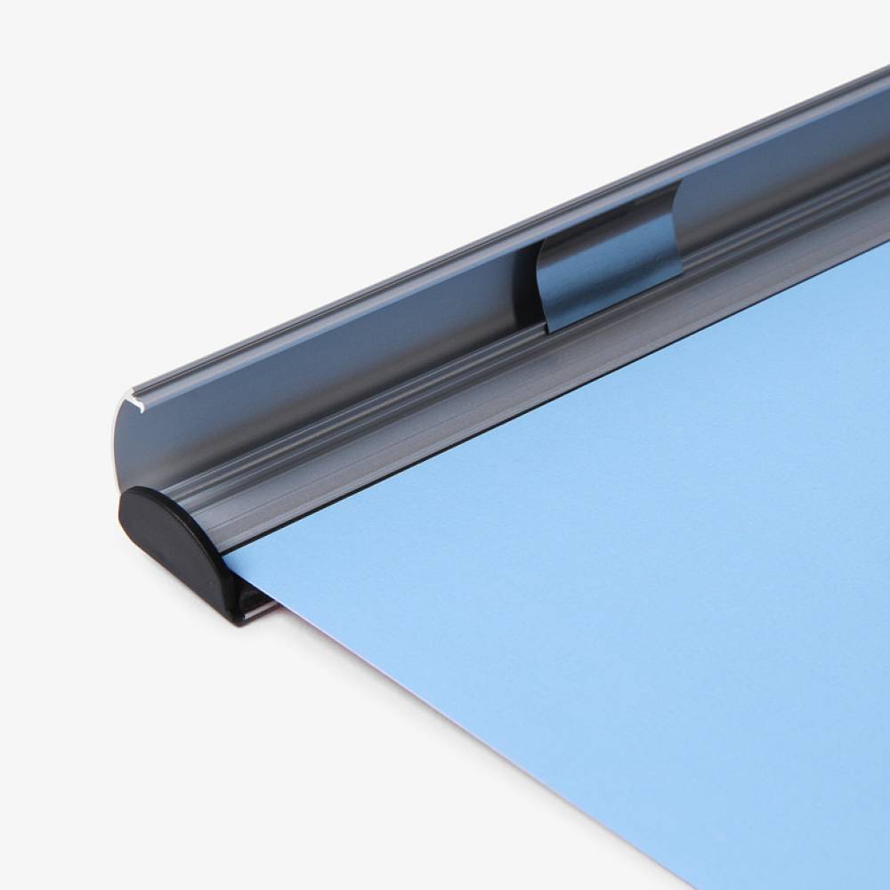 An der Ober- und Unterkante wird eine Aluminium-Klemmleiste angebracht. An der Oberkante befinden sich Aufhängeösen zur Aufnahme von Seilen oder Nylonfäden. Bei einer Wandbefestigung können Sie Ösen auch zur Aufhängung verwendet werden.
