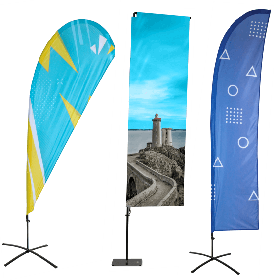 Unsere Beachflags WIND, DROP, SQUARE und FEATHER bringen Ihre Werbeaktivitäten in eine neue Form. Die Werbefahnen zum aufstellen überzeugen durch schnellen und problemlosen Aufbau und sorgen auf Messen, Events oder einfach vorm Ladenlokal für eine Menge Aufmerksamkeit. Die Beachflags können mit 6 verschiedenen Standfüßen ausgestattet werden.