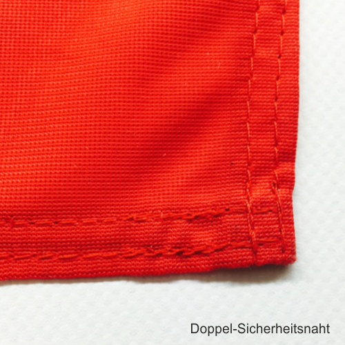 DISPEX Hissfahnen sind in allen Standardformaten sowie in Wunschformaten erhältlich. An der Mastseite werden in Verbindung mit einem reißfesten Besatzband Kunststoff-Karabiner angebracht. Eine Doppelsicherheitsnaht sorgt für eine angemessene Haltbarkeit. Bei großen Windlasten kann optional der besonders winddurchlässige Lochfilet-Fahnenstoff oder das robuste Longlife-Material gewählt werden.