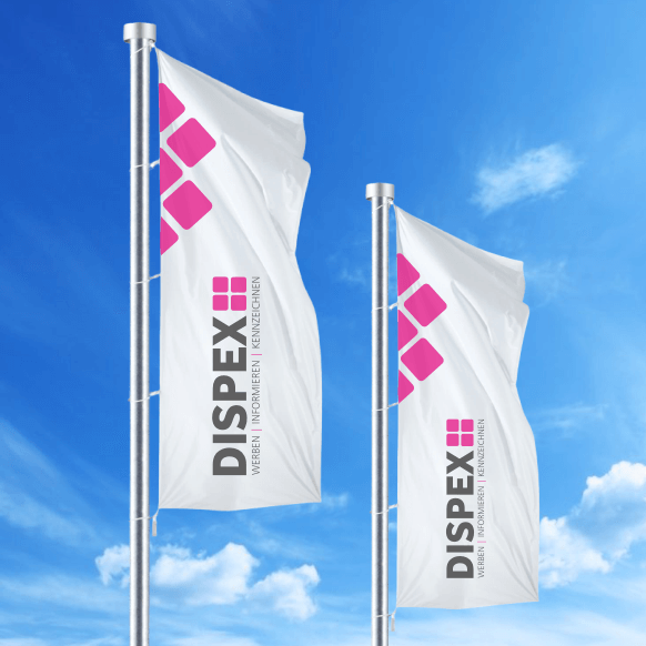 Hochwertige, aber trotzdem günstige Werbefahnen, Flaggen, Werbebanner und Beachflags von DISPEX sind das ideale Medium für großformatige Werbung im Außenbereich. Sowohl als Unternehmensfahne vor Ihrer Firmenzentrale, als auch als Eyecatcher auf Messen können unsere Werbefahnen eingesetzt werden. Machen Sie mit Werbefahnen und Flaggen auf Märkten auf Ihren Stand aufmerksam und bieten Sie Ihren Kunden schon aus der Weite den gut sichtbaren Orientierungspunkt an.