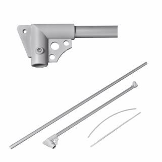 Windtracker-System zur Umrüstung von Fahnenmasten mit außenliegender/innenliegender Hissvorrichtung zu Fahnenmasten mit Bannerarm. Das System besteht aus Aluminium und hat eine Auslegerstange (horizontal) von 1500mm (nachträglich kürzbar). Die Lieferung erfolgt inklusive Mastringe und Befestigungszubehör.